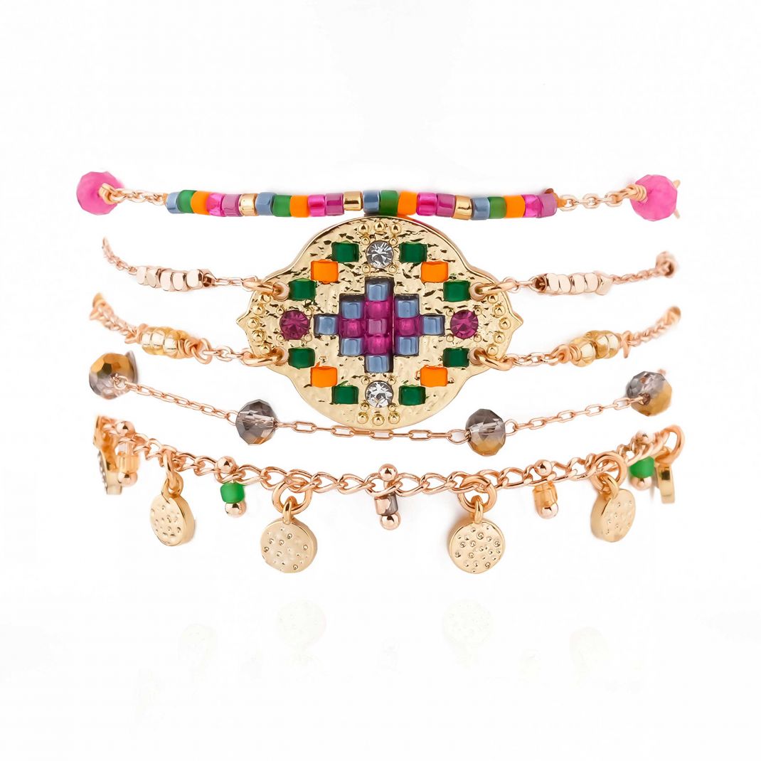 • Matière: Gold plated brass 14K, glass beads, CZ crystal, magnetic clasp