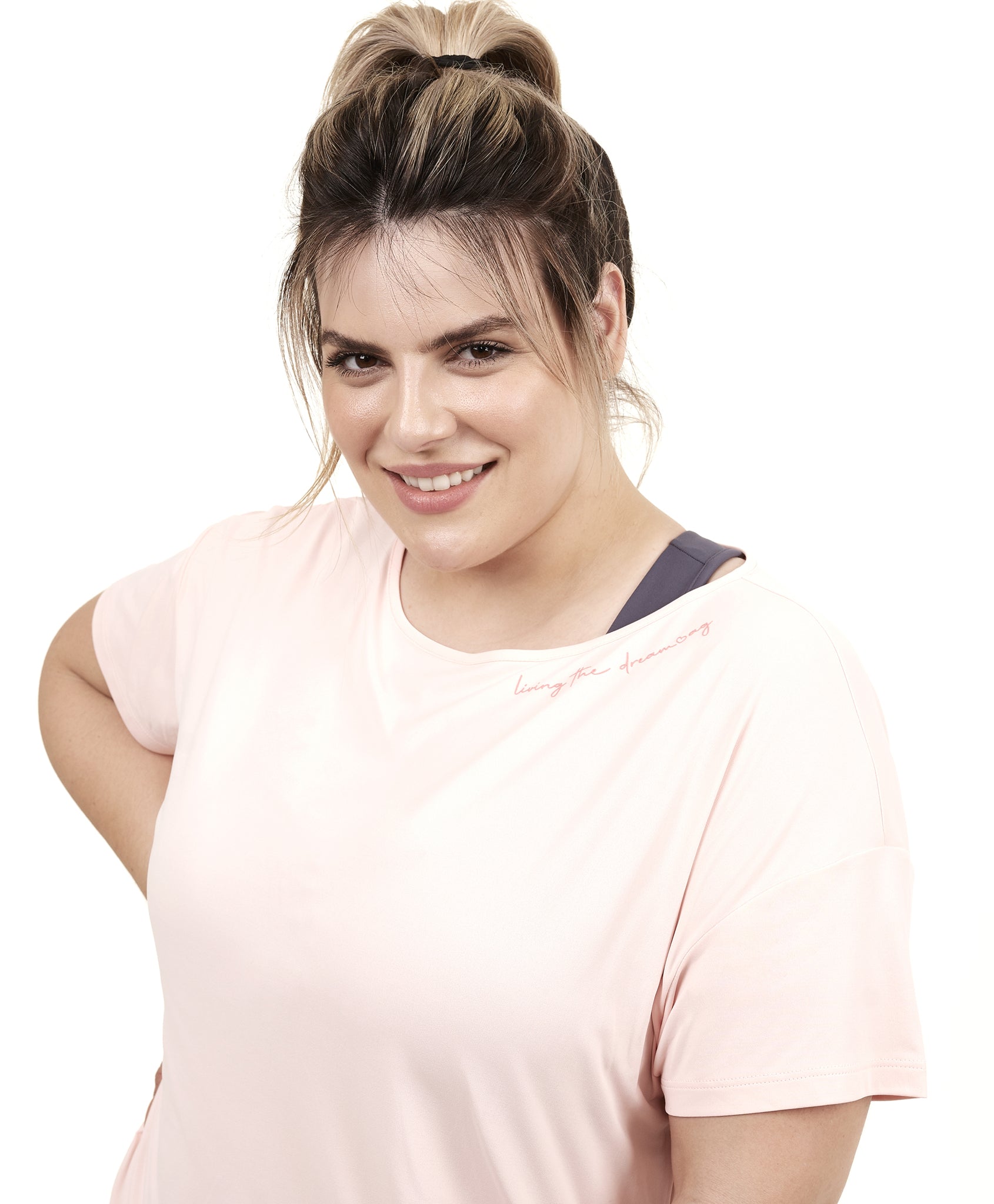 Skin Fit T-Shirt Alongada Gola V Rosa Respire