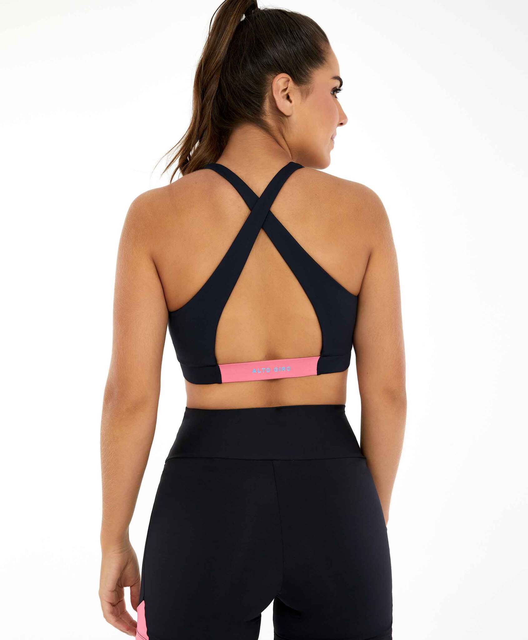 Model Back: Alto Giro Fitness Haut Top Hyper Costas Cruzadas Preto